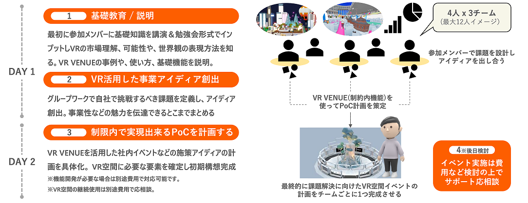 基礎教育/説明を始め、VRを活用した事業アイディアの創出、PoCの計画等、
